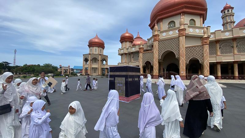 Yayasan Pinto Tanoh Rincong menggelar kegiatan manasik haji bagi siswa Sekolah Tahfiz Plus Khairul Ummah dan TK Jaisy Khairu Ummah Aceh Barat, Selasa (3/6/2025). Kegiatan berlangsung dihalaman Masjid Agung Baitul Makmur Meulaboh diikuti oleh 40 peserta didik dari jenjang SD dan TK, didampingi oleh 15 orang guru pendamping.